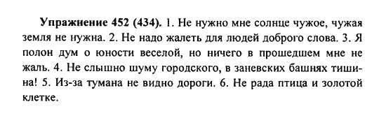 Решения домашних заданий по русскому языку 7 класс Пименова С.Н., Еремеева А.П., Купалова А.Ю. 452(434) упражнение