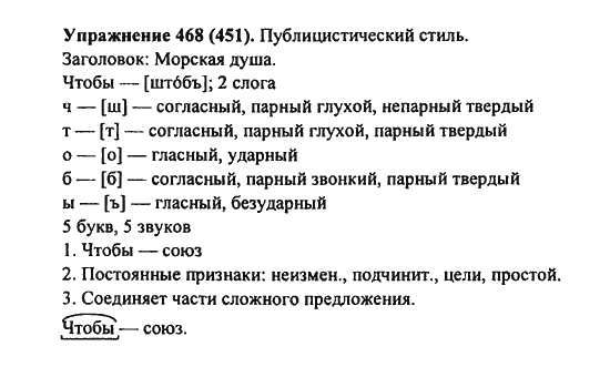 Решения домашних заданий по русскому языку 7 класс Пименова С.Н., Еремеева А.П., Купалова А.Ю. 468(451) упражнение