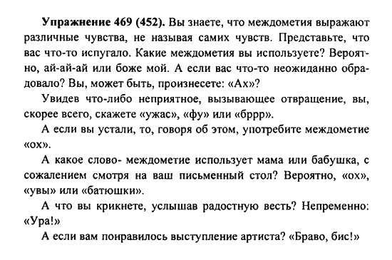 Решения домашних заданий по русскому языку 7 класс Пименова С.Н., Еремеева А.П., Купалова А.Ю. 469(452) упражнение