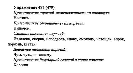Решения домашних заданий по русскому языку 7 класс Пименова С.Н., Еремеева А.П., Купалова А.Ю. 497(479) упражнение