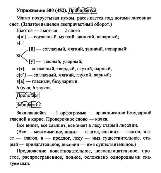 Решения домашних заданий по русскому языку 7 класс Пименова С.Н., Еремеева А.П., Купалова А.Ю. 500(482) упражнение