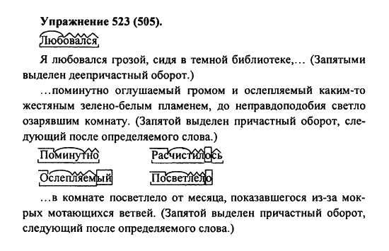Решения домашних заданий по русскому языку 7 класс Пименова С.Н., Еремеева А.П., Купалова А.Ю. 523(505) упражнение