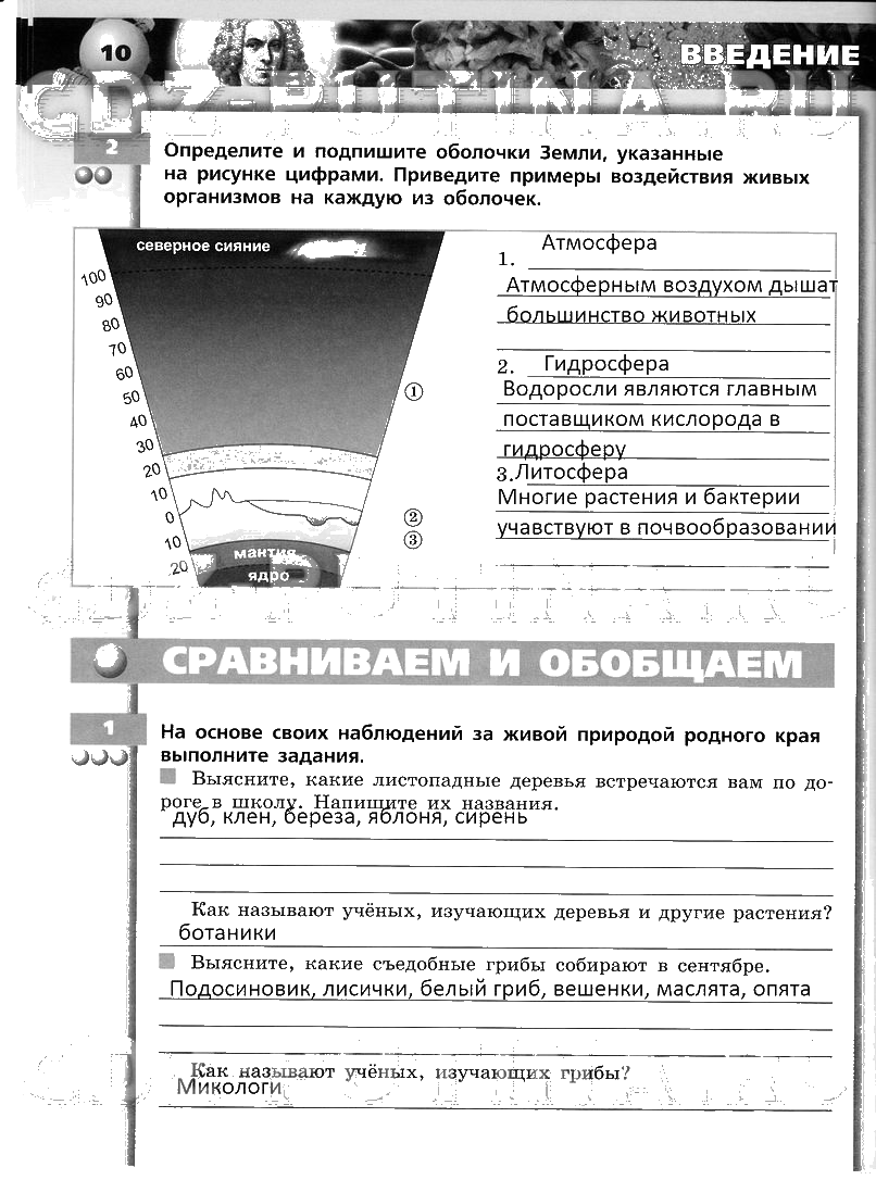 Решения домашних заданий по биологии 5, 6 класс Сухорукова 10 упражнение тетрадь тренажер