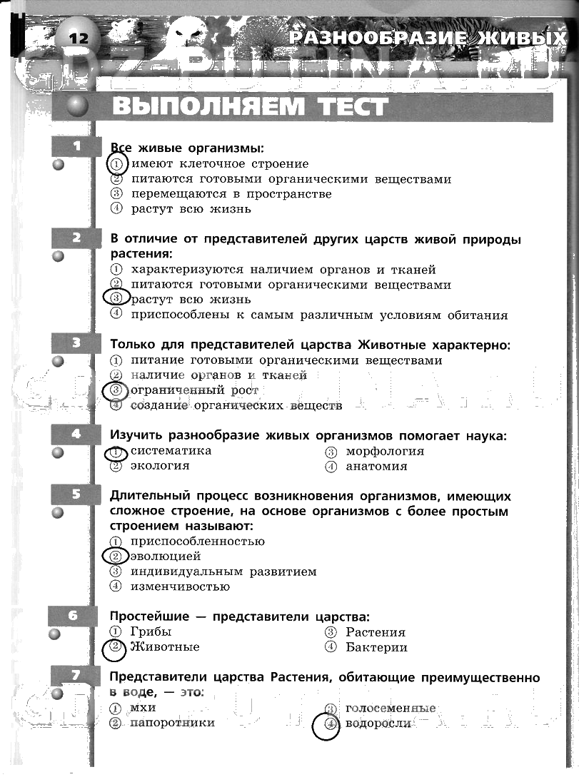 Решения домашних заданий по биологии 5, 6 класс Сухорукова 12 упражнение тетрадь тренажер