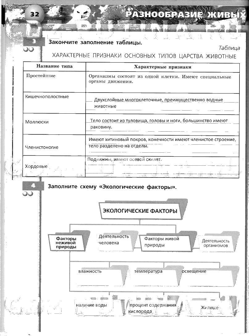 Решения домашних заданий по биологии 5, 6 класс Сухорукова 32 упражнение тетрадь тренажер