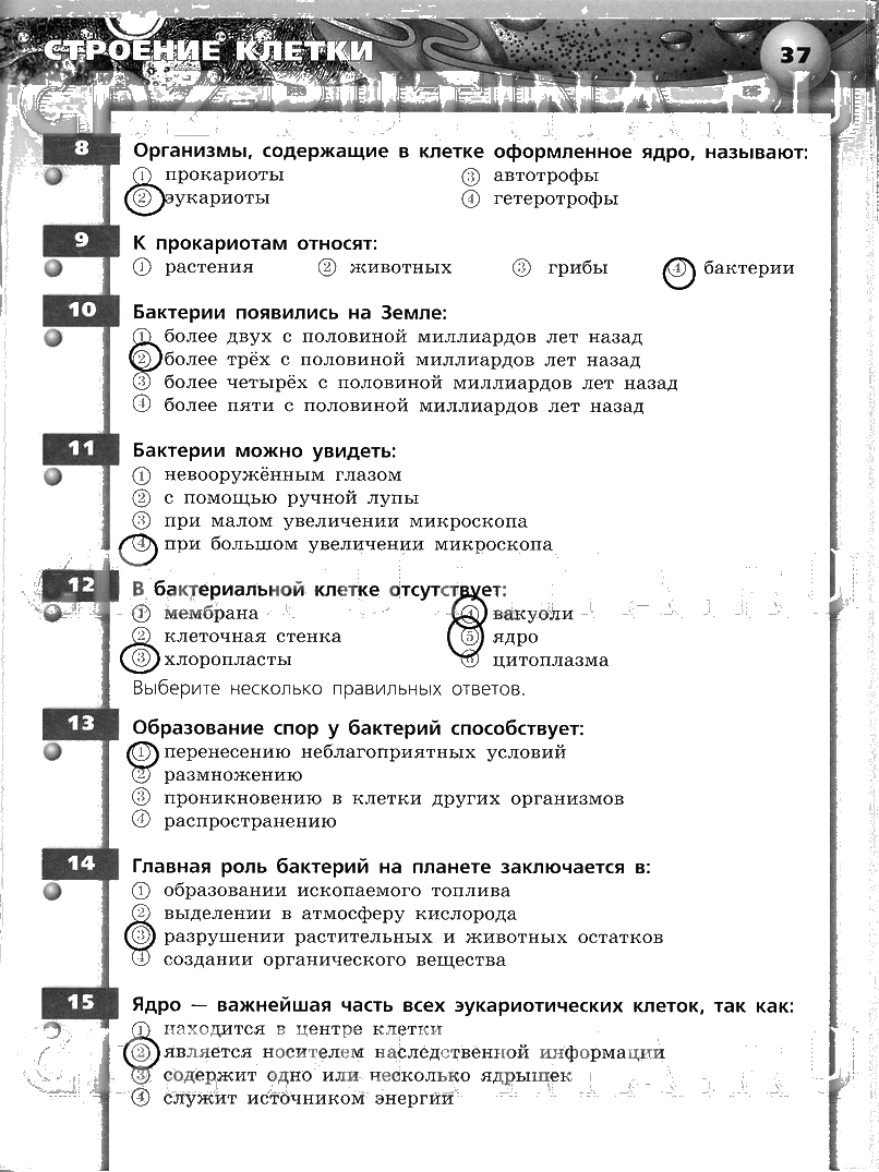 Решения домашних заданий по биологии 5, 6 класс Сухорукова 37 упражнение тетрадь тренажер
