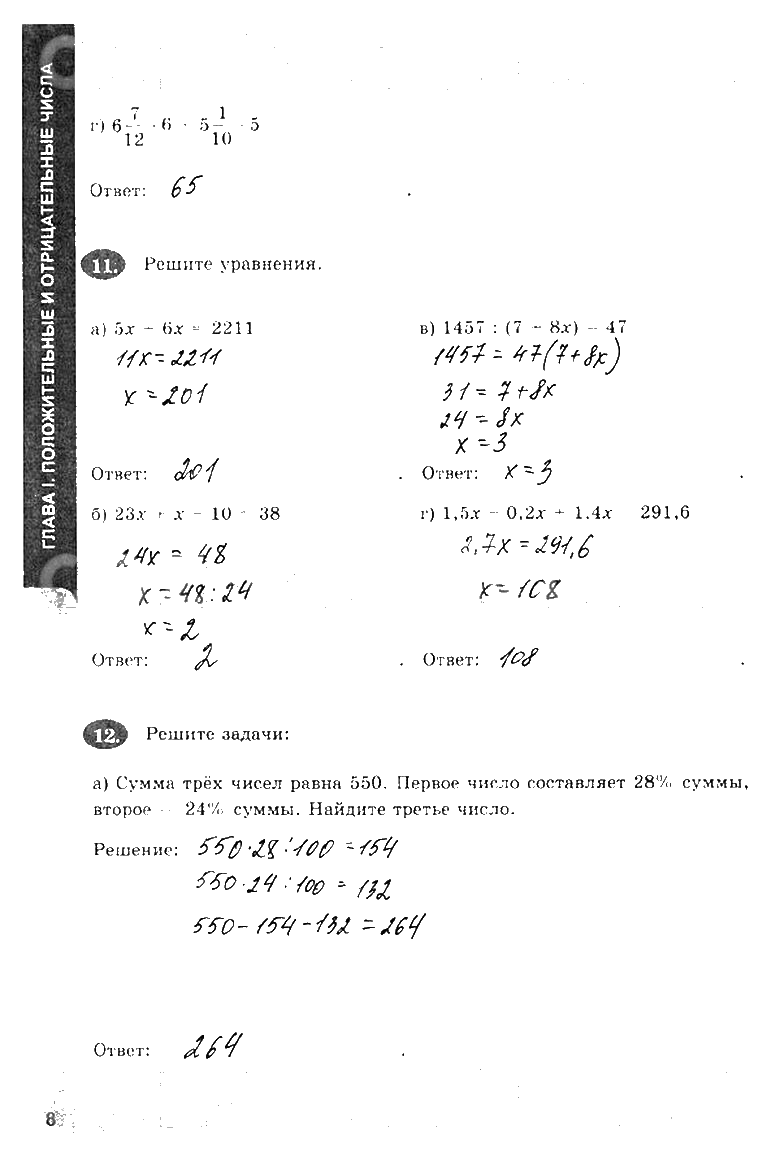 Решения домашних заданий по математике 6 класс Зубарева, Мордкович, Ерина 8 упражнение рабочая тетрадь
