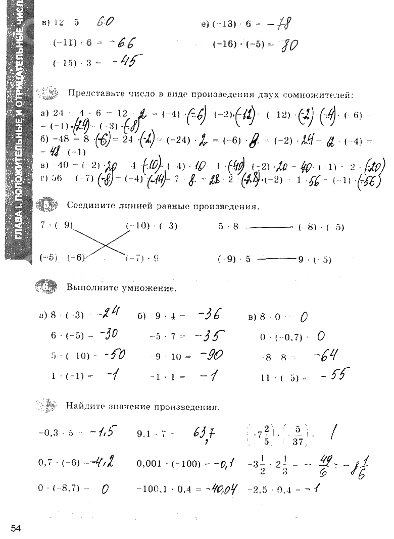 Решения домашних заданий по математике 6 класс Зубарева, Мордкович, Ерина 54 упражнение рабочая тетрадь