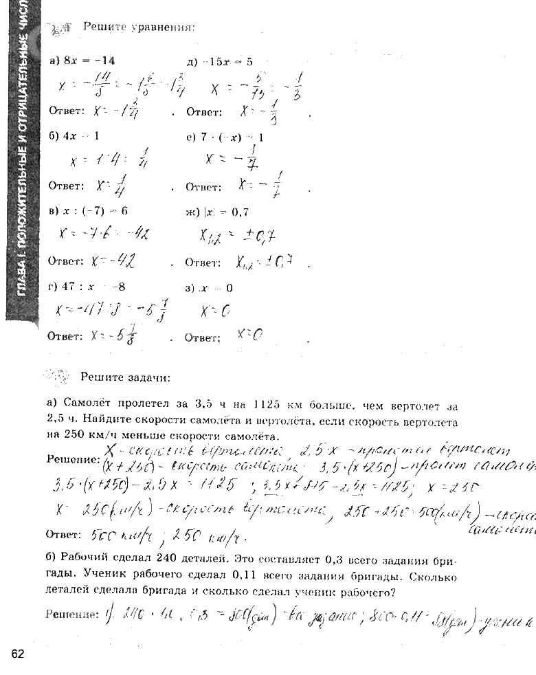 Решения домашних заданий по математике 6 класс Зубарева, Мордкович, Ерина 62 упражнение рабочая тетрадь