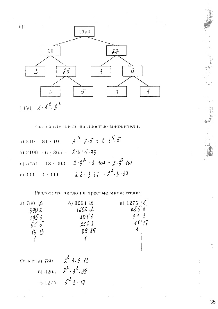 Решения домашних заданий по математике 6 класс Зубарева, Мордкович, Ерина 35 упражнение рабочая тетрадь
