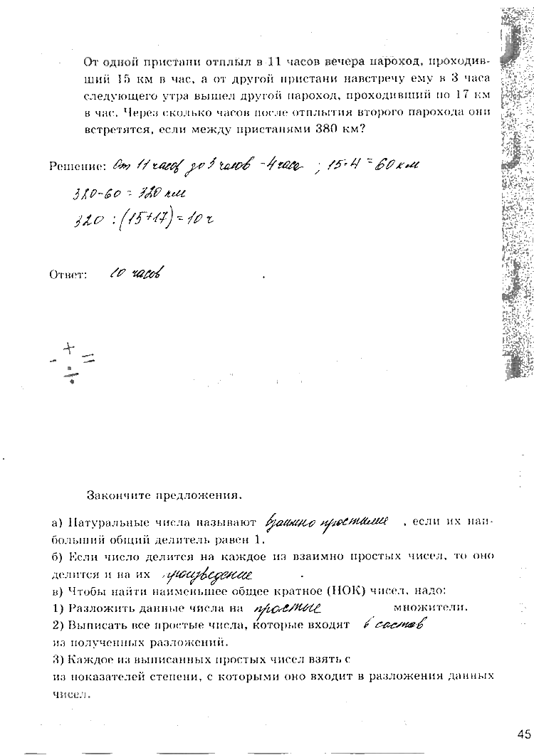 Решения домашних заданий по математике 6 класс Зубарева, Мордкович, Ерина 45 упражнение рабочая тетрадь