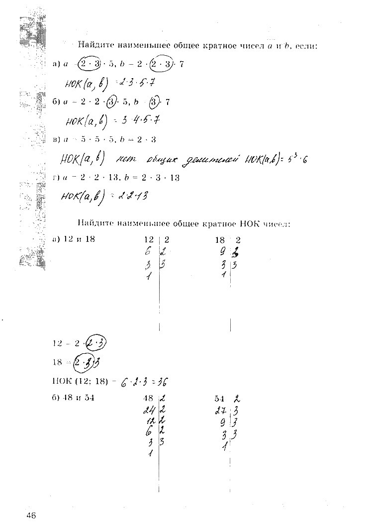 Решения домашних заданий по математике 6 класс Зубарева, Мордкович, Ерина 46 упражнение рабочая тетрадь
