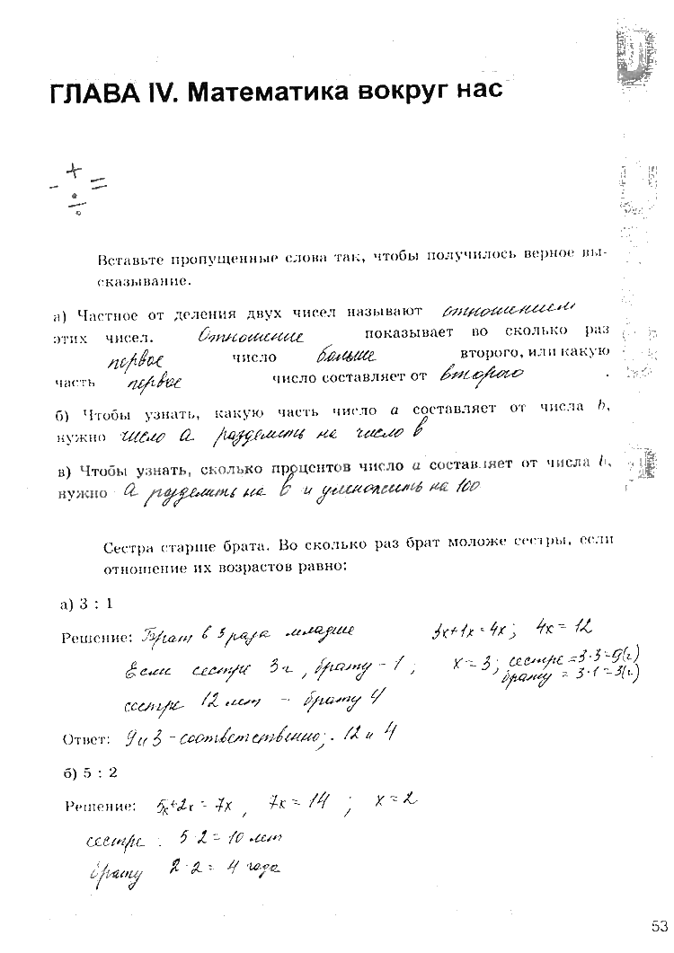 Решения домашних заданий по математике 6 класс Зубарева, Мордкович, Ерина 53 упражнение рабочая тетрадь