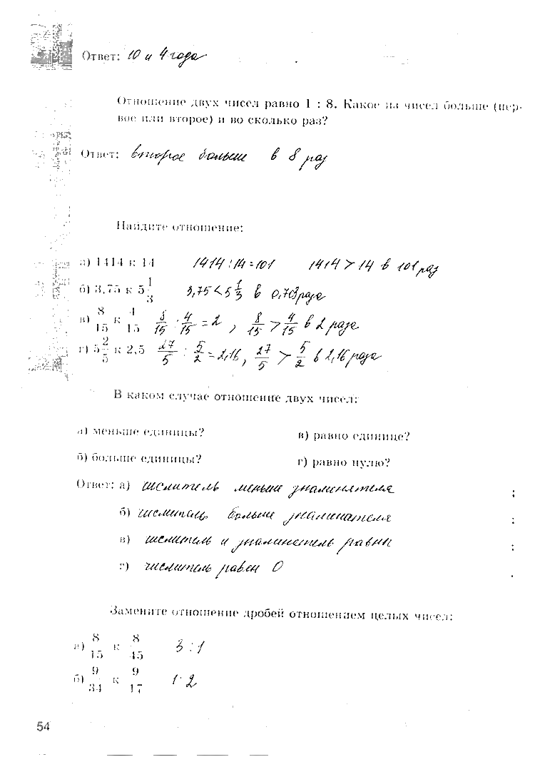 Решения домашних заданий по математике 6 класс Зубарева, Мордкович, Ерина 54 упражнение рабочая тетрадь