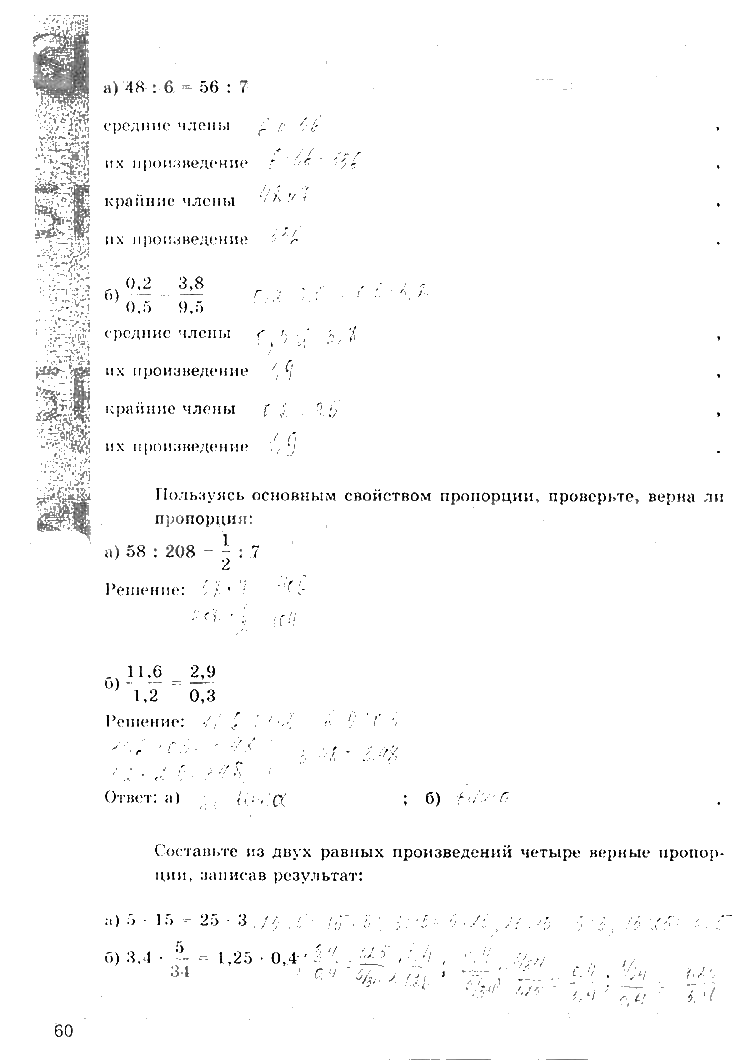 Решения домашних заданий по математике 6 класс Зубарева, Мордкович, Ерина 60 упражнение рабочая тетрадь