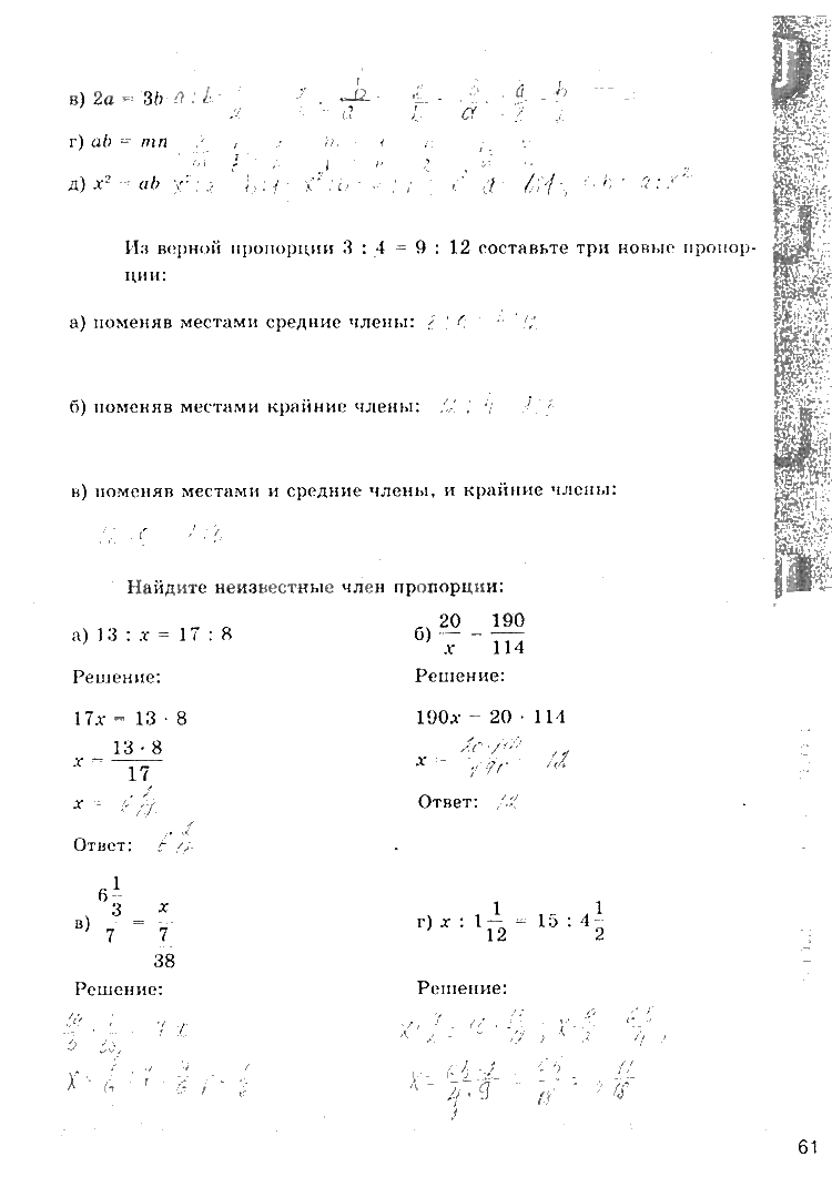 Решения домашних заданий по математике 6 класс Зубарева, Мордкович, Ерина 61 упражнение рабочая тетрадь