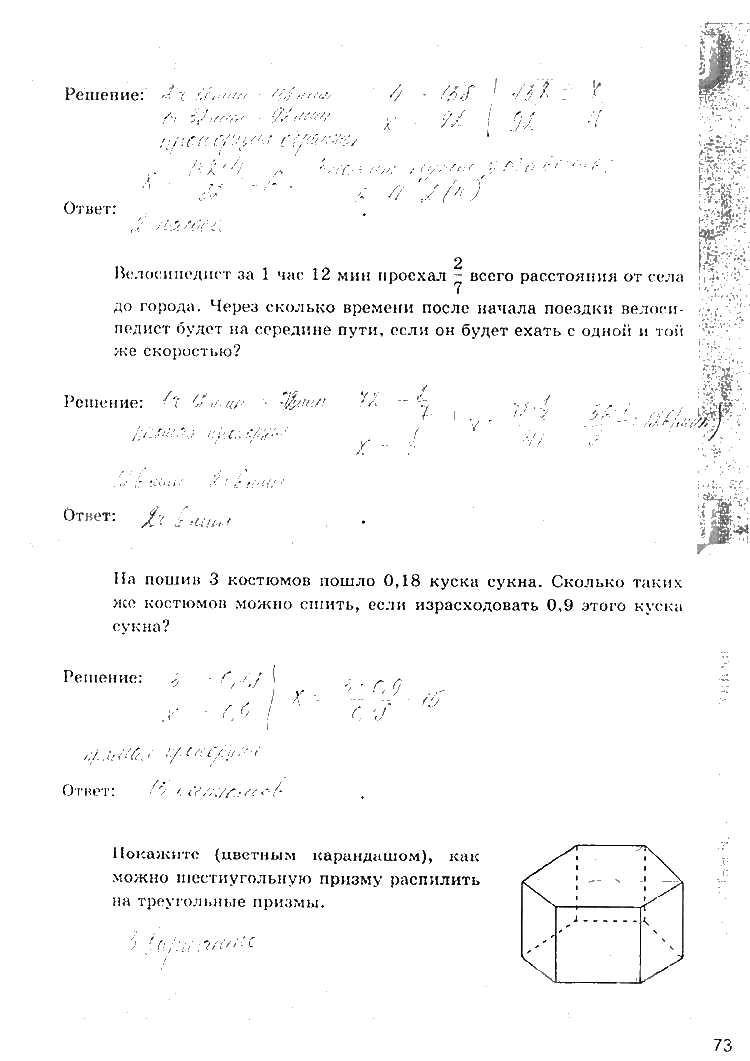 Решения домашних заданий по математике 6 класс Зубарева, Мордкович, Ерина 73 упражнение рабочая тетрадь