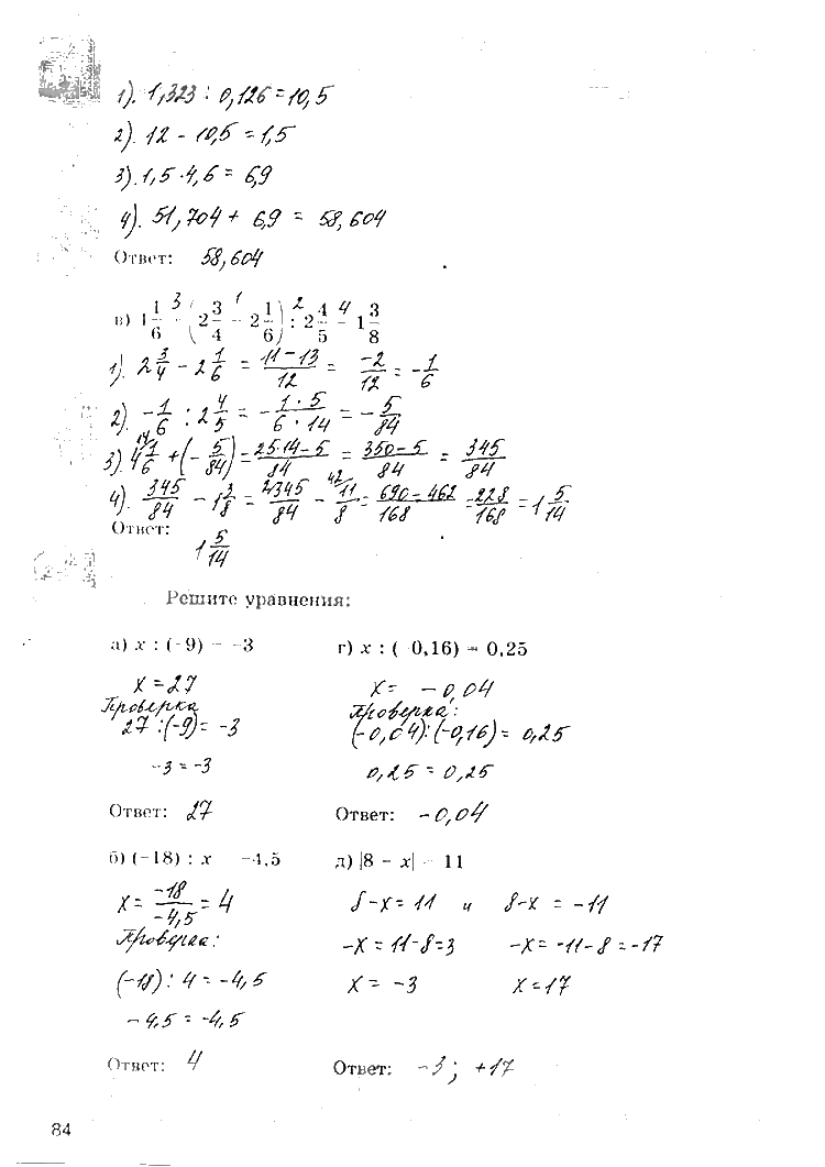 Решения домашних заданий по математике 6 класс Зубарева, Мордкович, Ерина 84 упражнение рабочая тетрадь