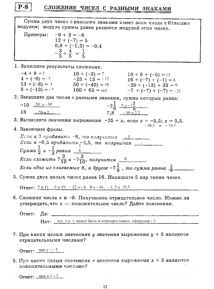 Решения домашних заданий по математике 6 класс Миндюк, Рудницкая 22 упражнение рабочая тетрадь