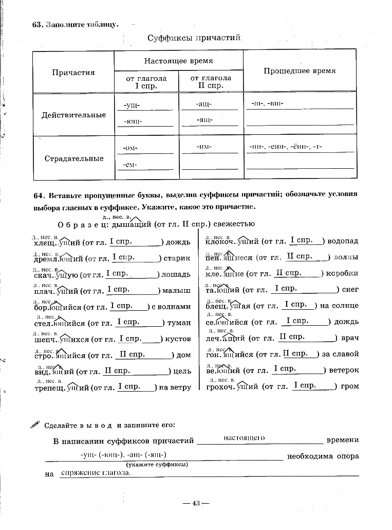 Решения домашних заданий по русскому языку 7 класс Богданова 43 упражнение рабочая тетрадь
