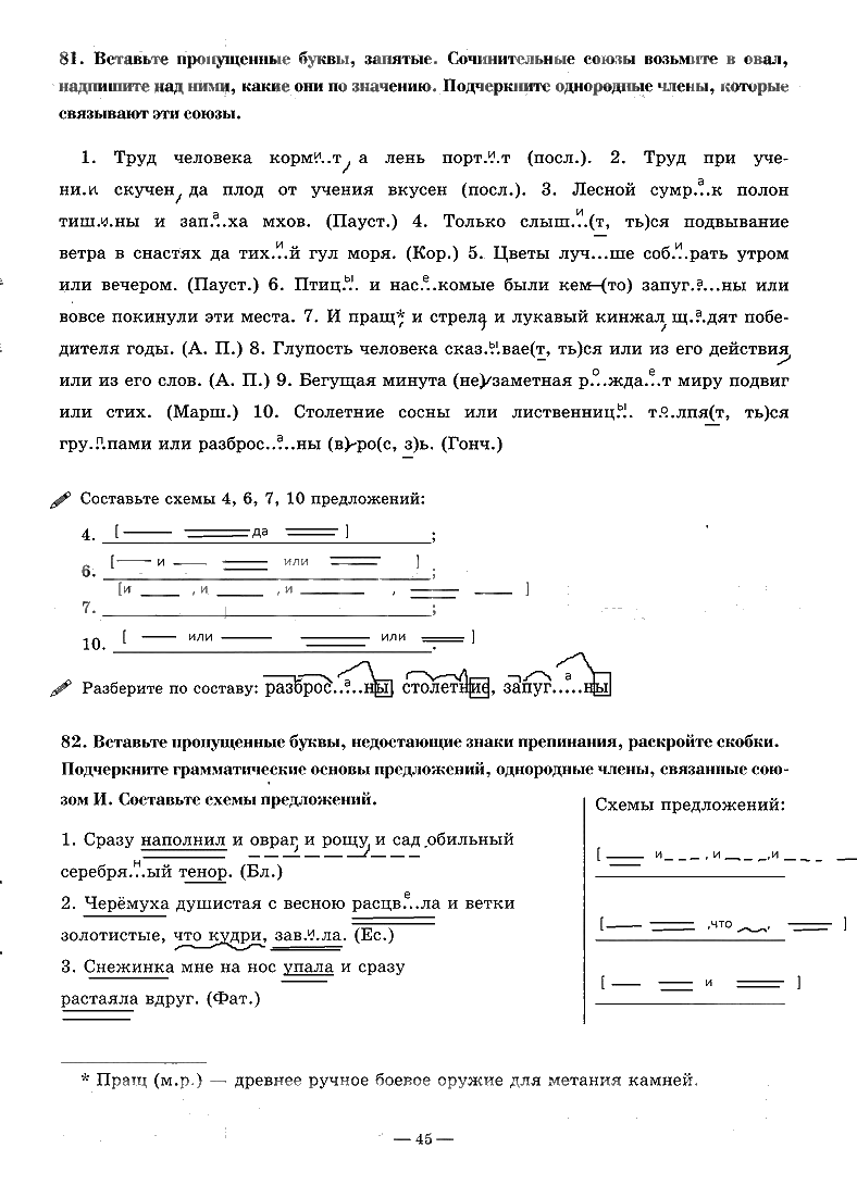 Решения домашних заданий по русскому языку 7 класс Богданова 45 упражнение рабочая тетрадь