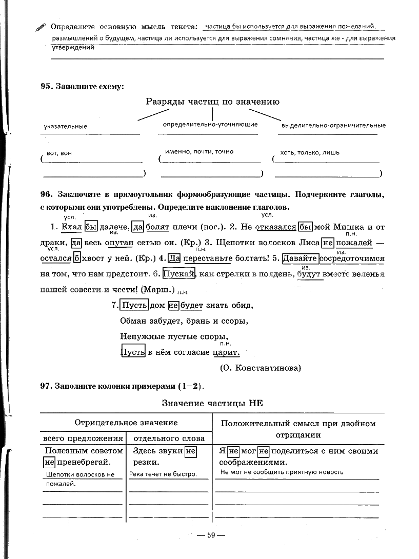 Решения домашних заданий по русскому языку 7 класс Богданова 59 упражнение рабочая тетрадь