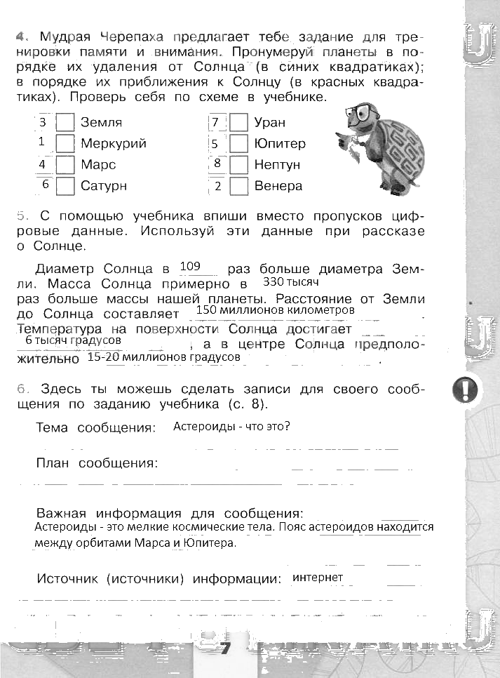 Решения домашних заданий по окружающему миру 4 класс Плешаков, Крючкова 7 упражнение рабочая тетрадь