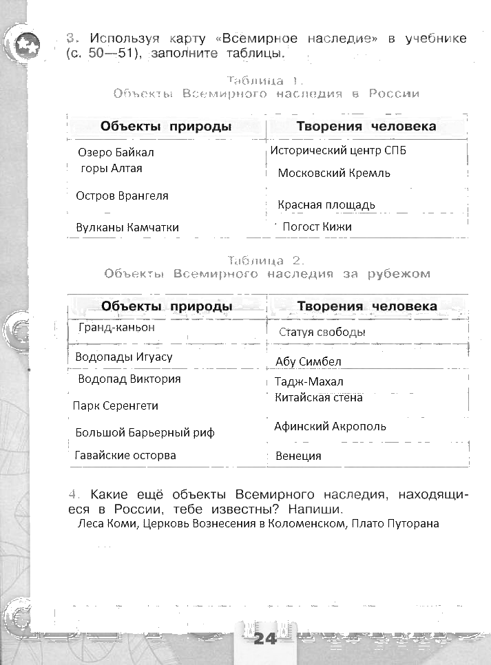 Решения домашних заданий по окружающему миру 4 класс Плешаков, Крючкова 24 упражнение рабочая тетрадь