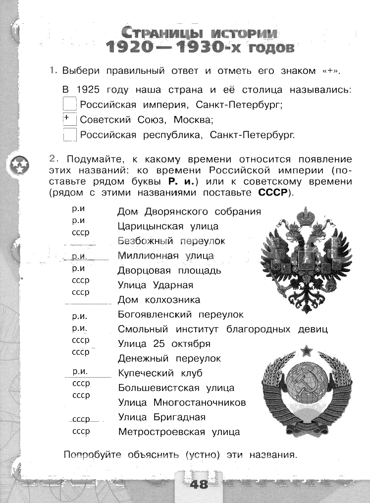 Решения домашних заданий по окружающему миру 4 класс Плешаков, Крючкова 48 упражнение рабочая тетрадь
