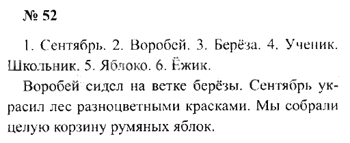 Решения домашних заданий по русскому языку 2 класс Канакина, Горецкий 52 упражнение Учебник, Рабочая тетрадь