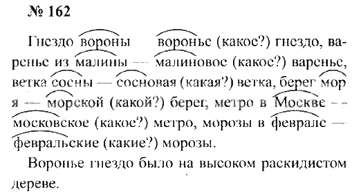 Решения домашних заданий по русскому языку 2 класс Канакина, Горецкий 162 упражнение Учебник, Рабочая тетрадь