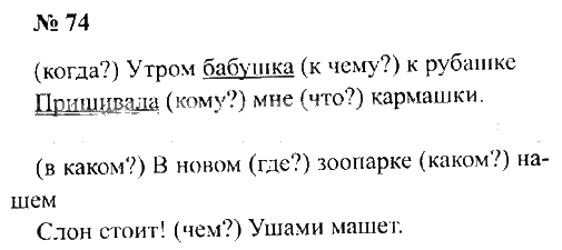 Решения домашних заданий по русскому языку 2 класс Канакина, Горецкий 74 упражнение Учебник, Рабочая тетрадь