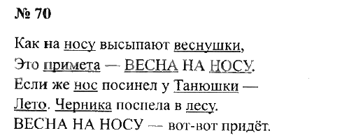 Решения домашних заданий по русскому языку 2 класс Канакина, Горецкий 70 упражнение Учебник, Рабочая тетрадь