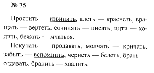 Решения домашних заданий по русскому языку 2 класс Канакина, Горецкий 75 упражнение Учебник, Рабочая тетрадь