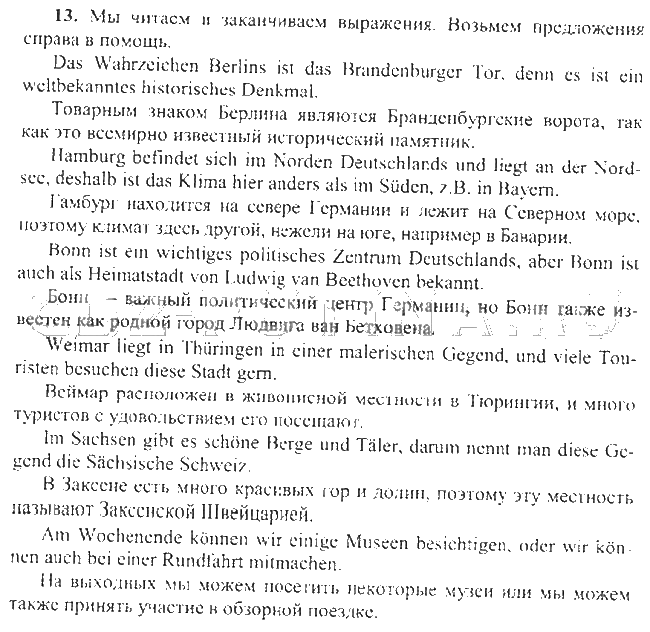 Решения домашних заданий по немецкому языку 7 класс Бим, Садомова 13 упражнение рабочая тетрадь