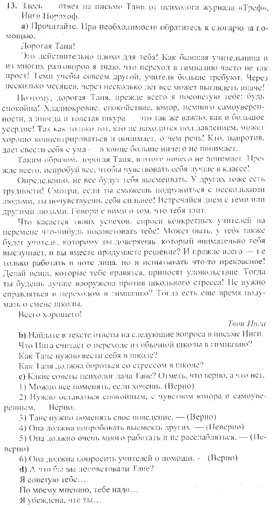 Решения домашних заданий по немецкому языку 8 класс Бим, Садомова 13 упражнение рабочая тетрадь