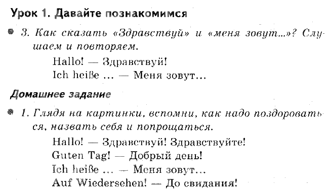 Решения домашних заданий по немецкому языку 2 класс Бим 1 упражнение рабочая тетрадь
