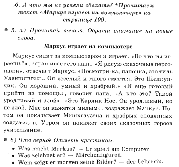 Решения домашних заданий по немецкому языку 2 класс Бим 6. А что мы не успели сделать Прочитаем текст Маркус играет на к упражнение рабочая тетрадь