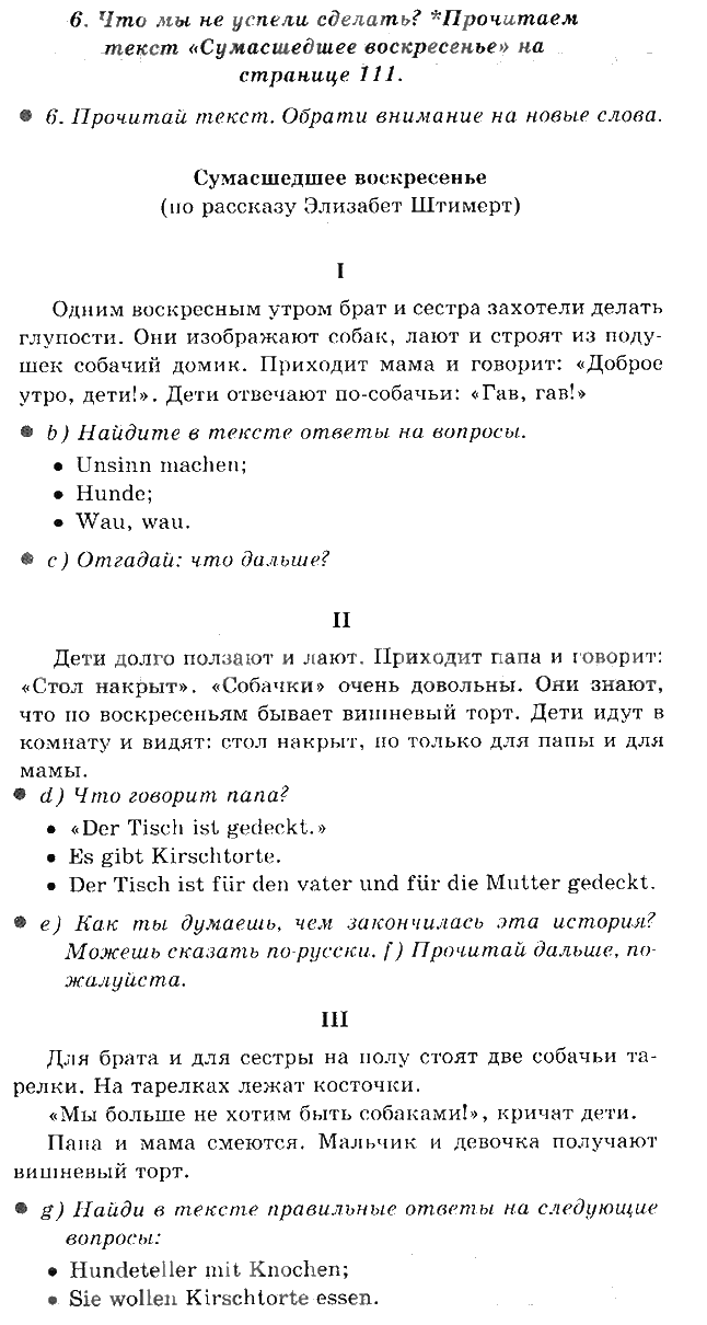 Решения домашних заданий по немецкому языку 2 класс Бим 6. Что мы не успели сделать Прочитаем текст Сумасшедшее воскресе упражнение рабочая тетрадь