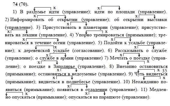 Решения домашних заданий по русскому языку 8 класс Бархударов С.Г. 74(70) упражнение