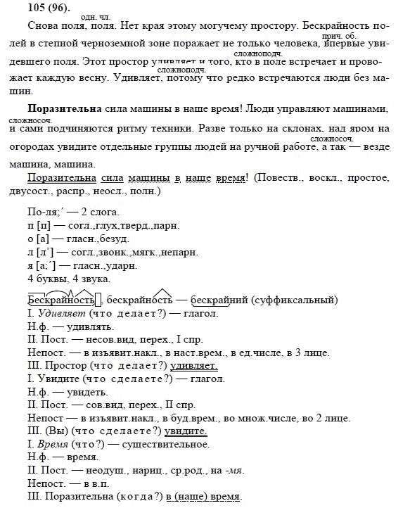 Решения домашних заданий по русскому языку 8 класс Бархударов С.Г. 105(96) упражнение