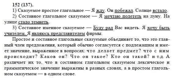 Решения домашних заданий по русскому языку 8 класс Бархударов С.Г. 152(137) упражнение