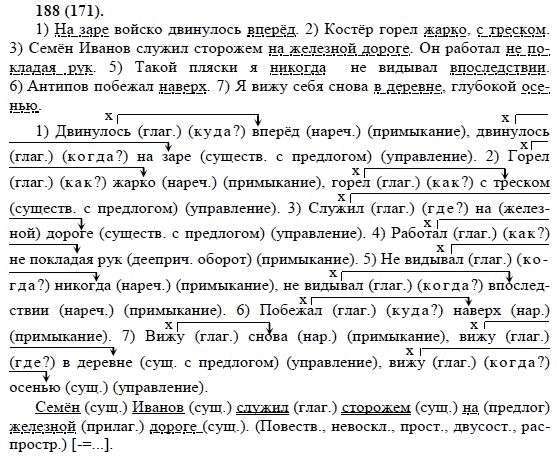 Решения домашних заданий по русскому языку 8 класс Бархударов С.Г. 188(171) упражнение