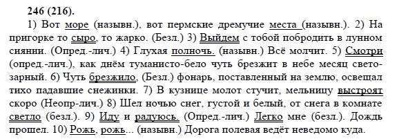 Решения домашних заданий по русскому языку 8 класс Бархударов С.Г. 246(216) упражнение