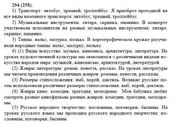 Решения домашних заданий по русскому языку 8 класс Бархударов С.Г. 294(258) упражнение