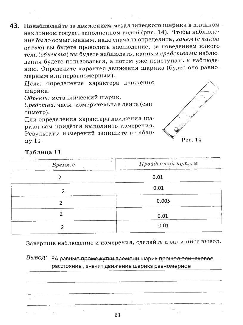 Решения домашних заданий по физике 7 класс Пурышева, Важеевская 21 упражнение рабочая тетрадь