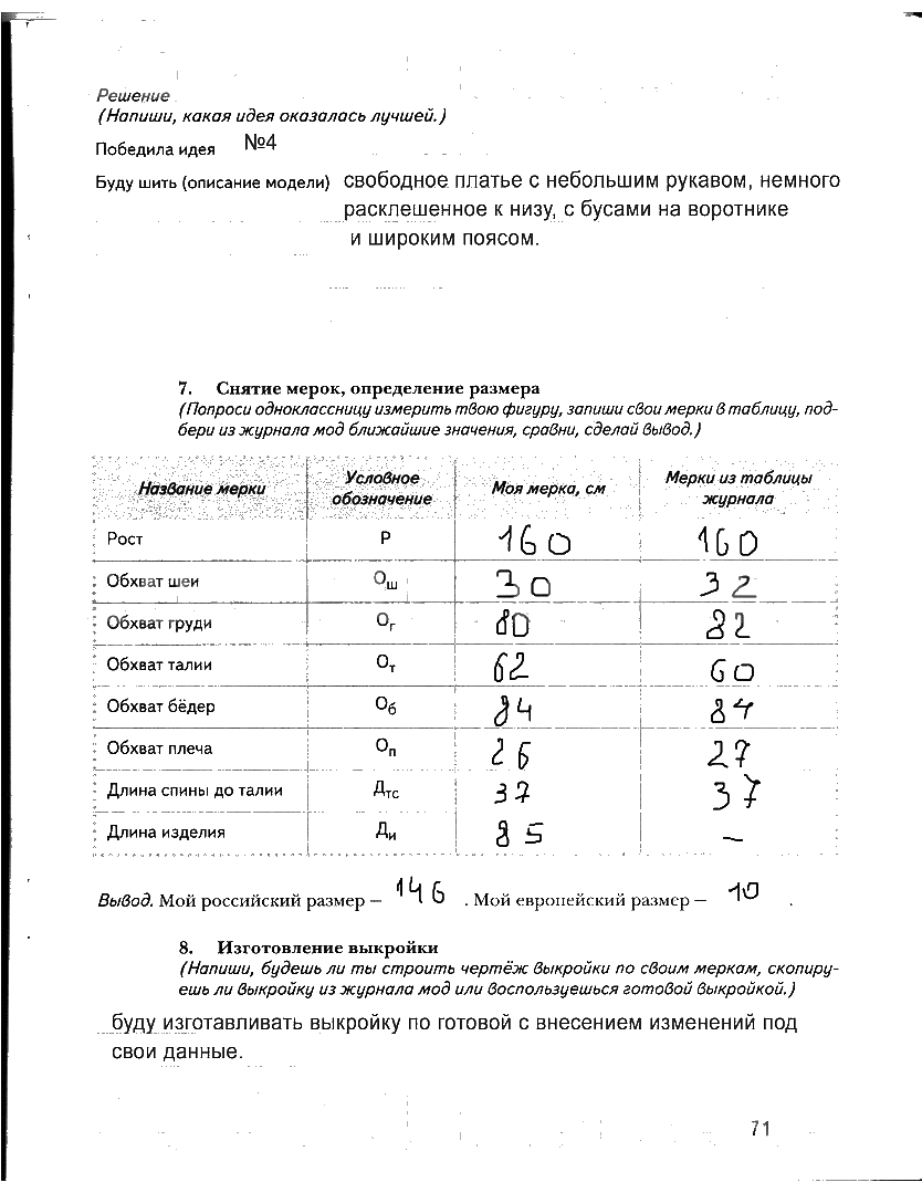Решения домашних заданий по технологии 7 класс Синица 71 упражнение рабочая тетрадь