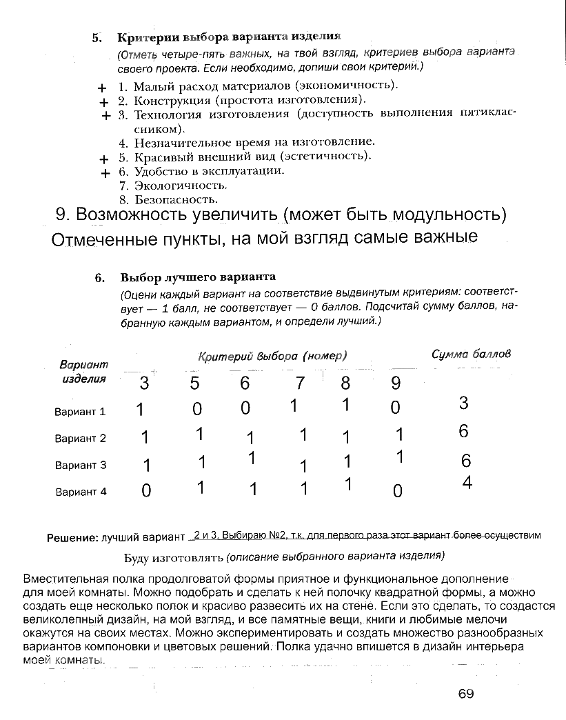 Решения домашних заданий по технологии 5 класс Тищенко, Буглаева 69 упражнение рабочая тетрадь
