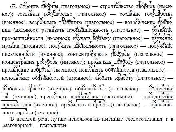 Решения домашних заданий по русскому языку 8 класс Тростенцова Л.А. 67 упражнение