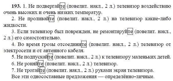 Решения домашних заданий по русскому языку 8 класс Тростенцова Л.А. 193 упражнение